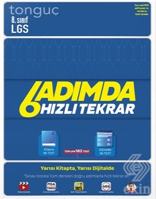 6 Adımda Hızlı Tekrar kitabında karşına adım adım bölümler çıkacak. Her adımdaTürkçe, T.C. İnkılap Tarihi ve Atatürkçülük, İngilizce, Din Kültürüve Ahlak Bilgisi, MatematikveFen Bilimleriderslerinden sorular bulacaksın. Elindeki kitabın testlerinin yarısı kitapta yarısı dijital platformda. (TATS uygulaması ya da dogrukaynak.com çalışma modu) Önce kitabını aktive et. Nasıl yapacağın kitabın arka iç kapağında anlatılıyor. Sonra her konunun sonunda karşına çıkacakdijital testlere dijital platformdan test kodu ile ulaşabilirsin.