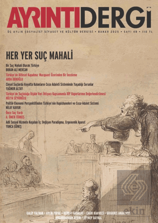 Ayrıntı Dergi'nin 48. sayısı, "Bir Suç Mahalli olarak Türkiye" başlıklı dosya konusuyla yayımlanıyor. Neredeyse her gün üst düzey kamu görevlileri ile organize suç örgütü liderleri ve dolandırıcılık şebekeleri arasındaki ilişkileri belgeleyen yeni fotoğrafların ortaya çıktığı; gazetecilerin sokakta saldırıya uğradığı; toplantı ve gösteri yürüyüşlerinde kötü muamelenin ve şiddetin yaygınlaştığı; yolsuzluk ve rüşvetin olağanlaştığı; adliyelerin kadın cinayetleri ve çocuk istismarı vakaları üzerinden siyasal bir mücadele alanına dönüştüğü ve suçun bir ilksel birikim aracına dönüştüğü bir ülkede suçu, suç ekonomisini, ceza adaletini ele aldığımız dosyanın editörlüğünü Boran Ali Mercan üstlendi