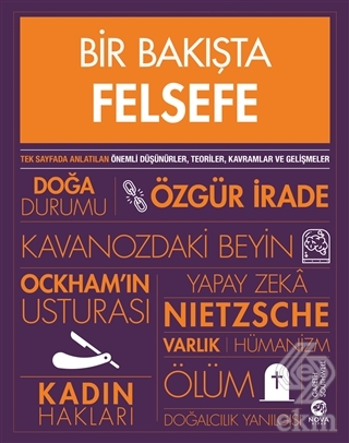 Bir Bakışta Felsefe, tüm önemli felsefi bilgi ve düşünceyi bir ciltte bir araya getiriyor. Her sayfa, bilmeniz gereken en önemli gerçekleri bir bakışta konuya hâkim olabilemeniz için küçük parçalar halinde sunuyor.