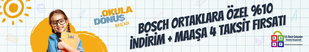 Yeni eğitim yılı kapıda, çocuklarınızın okul ihtiyaçlarını en uygun şartlarla karşılamanın tam zamanı! Bosch çalışanlarına özel olarak sunduğumuz %10 indirim* ve maaşa 4 taksit imkanı ile hem bütçenizi rahatlatın hem de çocuklarınızın geleceğine en iyi şekilde yatırım yapın.