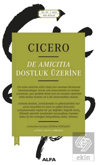 Roma'nın cumhuriyet rejiminden uzaklaşarak imparatorluk düzenine adım adım yaklaştığı İÖ 1. yüzyılda yaşayan ve bu çalkantılı siyasi ortamda Roma'nın soylu ideallerini ve cumhuriyet fikrini her fırsatta savunmaktan geri durmayan, hatta bu uğurda canını vermekten bile çekinmeyen büyük hatip, devlet adamı ve filozof Cicero'nun ömrünün son demlerinde, siyasetten elini eteğini çektiği dönemde kaleme aldığı felsefe konulu eserlerinin başında gelir De Amicitia (Dostluk Üzerine). Zihnini Yunan kültürüyle yoğurmuş, Platon'un Akademeia'sından Aristoteles'in Peripatos'una, hatta Epikurosçu ve Stoacı okullara değin Yunan düşüncesini satır satır özümsemiş bir filozof olan Cicero, bu eserinde Yunan ahlak felsefesinin en temel kavramlarından biri olan dostluğu Romalı bir bakış açısıyla ele almış ve bu kavramı Roma'nın siyaset arenasına taşıyarak fikir ve eylem yoldaşlığına dönüştürmüştür.