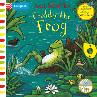 Little ones can join in the fun with Freddy the Frog by pulling out the sliders, pushing up the tabs and making lots of noise down at the pond. Follow Freddy as he squelches in slime, races his friends and croaks all the day long!