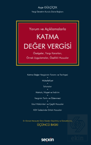 Gördüğü yoğun ilgi sonucunda, en son güncel mevzuata göre güncellenmiş ve gözden geçirilmiş 3. baskısını yapan bu kitap, mesleği ve görevi gereği Katma Değer Vergisi (KDV) konusunda uzun yıllara dayanan bilgi ve deneyime sahip Vergi Başmüfettişi (E. Gelirler Kontrolörü) Ayşegül Çiçek tarafından kaleme alınmıştır.