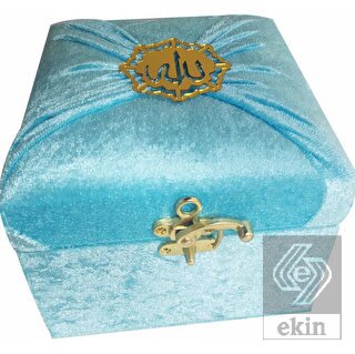 M285M - Mühürlü Cep Boy Kadife Sandıklı Mealli Kuran-ı Kerim - Mavi