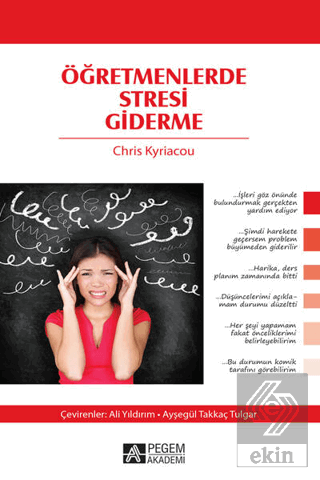 Öğretmenlik mesleği genelde stresli bir meslek olarak bilinir; öğretmenler de işteki stresin olumlu ve etkili bir şekilde üstesinden gelmek için bir dizi yöntem geliştirmek durumundadır. Bu kitap öğretmenlere bunu başarmada pratik bir yönlendirme sağlamak içindir. Dr. Chris Kyriacou bu kitapta engin deneyimini ve hem mesleğe yeni başlayan hem de deneyimli öğretmenlerle yaptığı çalışmaları sergilemektedir. Öğretmenlerde Stresi Giderme kitabı şu konuları ele almaktadır: