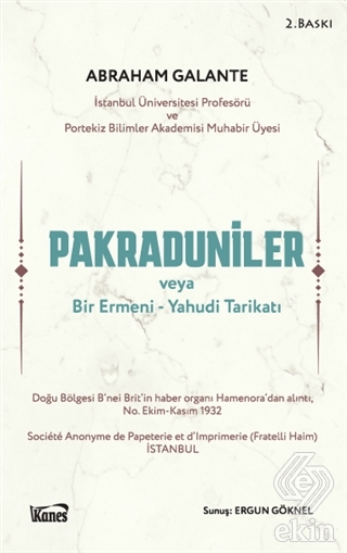 Yahudi bilim insanı ve yazar Prof. Abraham Galante'nin 1933 yılında yayınladığı bir kitapçık, daha doğrusu risale: Les Pacradounis ou Une Secte Arméno-Juive (Pakraduniler veya bir Ermeni-Yahudi Tarikatı) Fransızca yazılmış ve Fratelli Haim basımevi tarafından yayınlanmıştır.