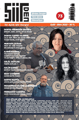 Şiirden Dergisi 73. sayısı ile okuru karşısında. Şiirden okuruna güveniyor ve okurunun elbette eleştirel bilince sahip, edebiyatı takip eden, dergileri vazgeçilmez bulan okuyucu/yorumculardan oluştuğunun bilincinde. Yoksa bir iki kitap okuyup lise ve üniversitedeki bilgilerle caka satanlardan oluşan bir okuyucu değil. Ama ne yazık ki ülkemiz böyleleriyle dolu. Hatta üniversitede hocaların, televizyonlarda yorumcuların çoğu böyle. Hatta sosyal medyada sabaha kadar şiir okuyup şiir tartışırlar. Eh bu da bir şeydir, diyemiyoruz. Cahilin cahile ne övgüsü ne yergisi bir şeye yaramıyor ne yazık ki. Bunun siyasetteki yansımasının ülkemizde nelere yol açtığını görüyoruz. Hep aynı sebepler. Cehalet ve yoksulluğun birbirini beslemesi bu sonucu doğuruyor. Ama her şeye karşı Şiirden Dergisi grafikerimiz Deniz Şensöz'ün yaptığı yeni kapak konsepti içindeki bu kapak ile hem görsel hem içerik olarak okurları tarafından olduğu gibi edebiyat camiasında da beğeni kazanmaya devam ediyor. Dergide yazı ve şiirleriyle yer alan yazar ve şairlerin fotoğrafları görsel olarak da dikkat çekiyor. Deniz Şensöz'e teşekkür. Klasik ve alışılmış bir sözle girelim: Her zamanki gibi yeni isimler ve zengin içeriğiyle Şiirden Dergisi yine arşivlik. Her sayısı ilgiyle karşılanan dergide bu defa iyi şair Ebubekir Eroğlu ile Cafer Yıldırım dosyaları yer alıyor. Ebubekir Eroğlu ile röportaj Şiirden'den, yazılar Cemil Okyay ve Yavuz Özdem'den. Cafer Yıldırım söyleşisi Halil Yeni'den, yazılar Prof. Dr. Nadir Engin Uzun, Tamer Öncül ve Eyüp Ekinci'den. Mustafa Durak bu sayıda, "Prof. Dr. Ayşe Kıran'ın Bir yerdeşlik Uygulaması" yazısı ile yer alıyor. Gjeke Marinaj (Arnavut/Amerikan) ise özellikle eski sosyalist Balkan ülkelerindeki edebiyat dünyasında karşılaşılan önemli bir duruma neşter atıyor. Protononizm teorisi savıyla edebiyatın sosyal işlevini irdeliyor. Konunun bizim ülkemizi de ilgilendireceğini düşünerek Marinaj'ın yazısını yayımladık. Celal Soycan "Okuma Notları" başlığıyla teorik okumalarına derkenar düşüyor, tartışıyor, düşünüyor. Bu sayıda ilkini yayımladık Okuma Notları'nın. duygu'nun, dile gelemeyenin yazıya geçirilme evresini irdeliyor bu kıymetli yazıda Soycan. Artık Halim Şafak da aramızda. Ülkemizin bu değerli kaleminin ilk yazısı yine önemli bir şairimiz olan Muzaffer kale'nin şiirine ışık düşüyor. Ülkemizin önemli bir edebiyat ve kültür adamı Eray Canberk ise Metin Cengiz'e yazdığı bir mektupla Yakın Dönem Türk Şiiri adlı kitaba ilişkin düşüncelerini dile getiriyor. Bir süredir ara verdiğimiz "Dünya Şairleriyle Poetik Söyleşi"nin bu sayıdaki konuğu, ünlü İtalyan şair ve eleştiri ve deneme yazarı Dante Maffia. Bu sayıda değişik 11 ülke (Türkiye ile 12) şairinin şiirlerine yer verdik; çevirileriyle katkıda bulunanlar: Metin Cengiz, Ahmet Yıkık, Turgut Say, Övünç Cengiz, Müesser Yeniay, Murat Yurdakul, Günay Hasan, Aynur Engin, Ersin Engin, Serkan Doğan ve Turgut Sayo. Her biri kendi ülkesinde saygın bir yere sahip bu şairlerden yapılan çeviriler ayrıca editörler kurulunda gözden geçiriliyor. Türkiye'den Mehmet Sadık Kırımlı, Metin Cengiz, Yavuz Özdem, Tamer Öncül, Tuğrul Keskin, Mustafa Durak, Fahrettin Koyuncu, Başak Tuncel, Kenan Kocatürk, Ulaş Yiğiter, Mustafa Seyfi, Bülent Akay, Faik Güçlü, Yaşar Akalın, Hatice Hamarat, Erdoğan Kul, Eser Ceran Erdi, Kaplan, Mustafa Müezzinoğlu, Ayşe Şafak Kanca, Seçil Hidayet, Filiz Kalkışım Çolak, Osman Akyol şiirleriyle dergide yer aldılar.