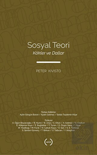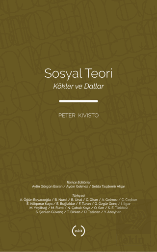 Dallar: Çağdaş Sosyal Teori başlığı altında ise Kivisto, sosyal teoriye damgasını vurmuş İşlevselcilik, Çatışma, Sembolik Etkileşim, Fenomenoloji ve Etnometodoloji, Alışveriş ve Rasyonel Seçim, Feminist, Irk, Etnisite ve Milliyetçilik, Eleştirel Çağdaş Modernite, Yapısalcılık, Postyapısalcılık ve Postmodernite, Dünya Sistemleri ve Küreselleşme Teorileri ile Çağdaş Sosyal Teoride Yeni Yönelimler konularında, anılan isimlere ve onların metinlerine yer veriyor. Böylece başta Robert Merton ve Niklas Luhmann olmak üzere sosyoloji bilimini zenginleştiren C. Wright Mills'ten Charles Tilly'ye, Herbert Blumer'den Harold Garfinkel'e, George C. Homans'dan Peter Blau'ya, Candace West ve Don H. Zimmerman'dan Raewyn Connell'a, Michael Omi ve Howard Winant'den Craig Calhoun'a, Walter Benjamin'den Axel Honneth'e, Norbert Elias'dan Giorgio Agamben'e, Pierre Bourdieu'dan Jean-François Lyotard'a, Immanuel Wallerstein'den Douıglas Kellner'e, Alain Touraine, Steven Seidman ve Manuel Castells'den John Urry'ye kadar birçok teorisyenin kendi metinlerine ulaşmamızı sağlıyor. Sosyal teorinin kökleri ile dalları arasında bağlantılar kurarak bir köprü oluşturan Kivisto'nun bu eseri, kapsamlı bir içerik sunmasıyla da dikkat çekiyor. Yoğun ve titiz bir çalışmayla Türkçeye kazandırılan kitap, sosyal bilimcilere, sosyal bilimlere ilgi duyanlara ve sosyologlara yol gösterici olma niteliğindedir.