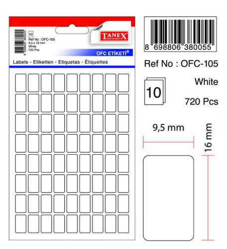 TANEX OFC-105 BEYAZ OFİS ETİKETİ 10 AD.