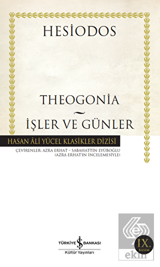 Hesiodos (y. MÖ 8. yüzyıl): Kullandığı dil, yapıtlarının taşıdığı bazı karakteristik özellikler, hayatı hakkında çok az bilgiye sahip olduğumuz Hesiodos'un Aiol ve İon kökenli olduğunu göstermektedir. Büyük ozana ait olduğu kanıtlanmış iki önemli eserden biri olan Theogonia, evrenin yaratılışı, tanrıların doğuşu, tanrıların ve tanrısal varlıkların soyları gibi Yunan kozmolojisini kuran meseleler ile belli başlı Yunan efsanelerini konu alan epik bir eserdir. Yunan didaktik şiirinin ilk örneği kabul edilen İşler ve Günler'de ise ozan, insanlık tecrübesine adalet, erdem, çalışma, cömertlik, hak, hukuk, düzen ve doğruluk gibi kavramların "gerçeğini" söyleyerek dokunur; tarım, denizcilik işlerine dair işlevsel bilgiler sunar; ayın uğurlu ve uğursuz günlerini sıralar. Bu bilgece öğütler Anadolu insanına yabancı gelmeyecektir, zira konuşan sadece Hesiodos değil, aynı zamanda Akdeniz halklarıdır. Hasan Âli Yücel Klasikler Dizisi, bu iki eserin bu en değerli çevirisini, Azra Erhat'ın hazırladığı "Hesiodos Eseri ve Kaynakları" başlıklı inceleme ve sözlük eşliğinde yeniden okurla buluşturuyor.